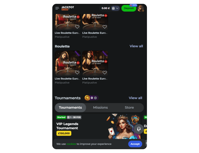 I tested Jackpotraider first via its mobile web before the desktop version. Usability was 100% smooth, and here’s an overview: