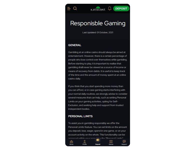 Responsible Gaming Section