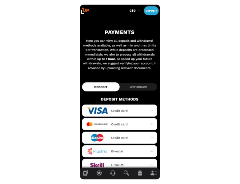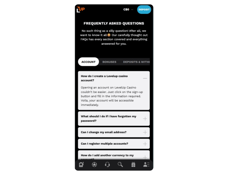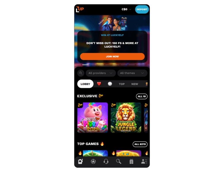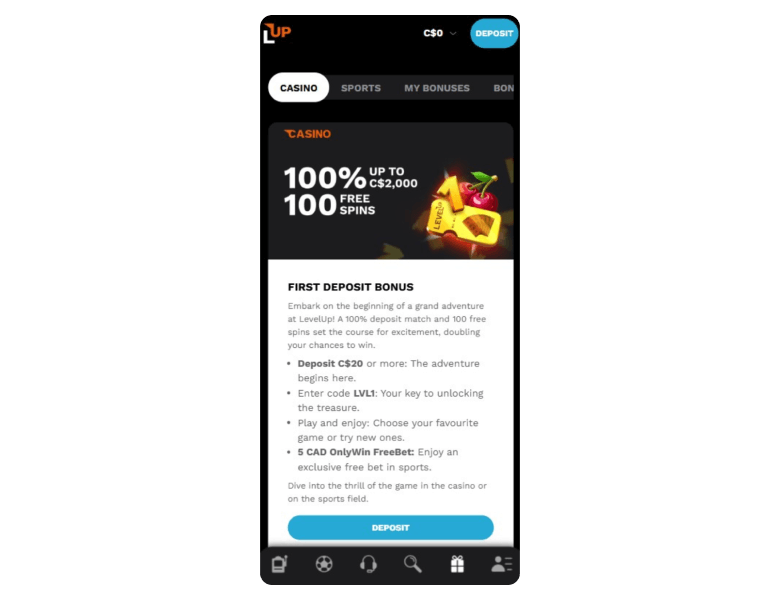 I was curious about the generous incentives offered by Level Up Casino and decided to register on this platform. This gambling site has an impressive collection of 5,059+ titles, including 4,154 slots, 341 Blackjack games, and other engaging apps. The site offers a 100% match bonus on the first three deposits and a 50% match bonus on the fourth one. I deposited CA$100 to stay on the safe side.