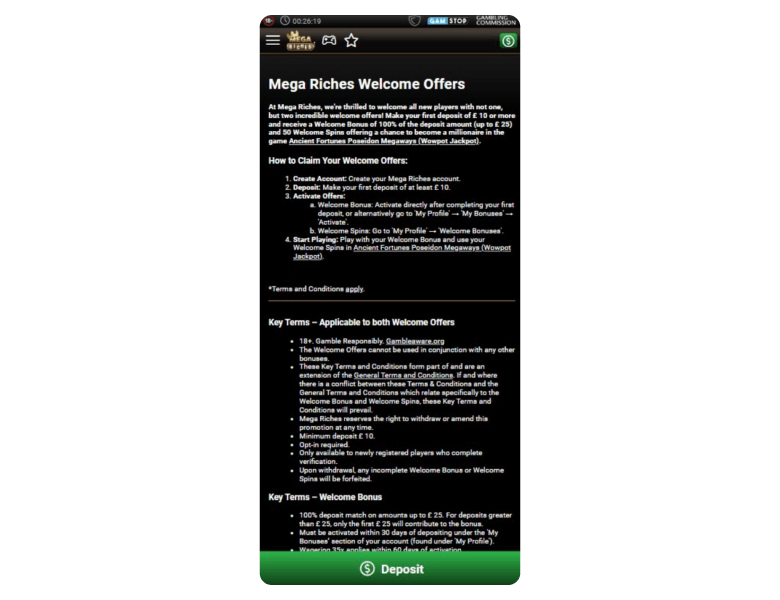 Honestly, the only downside is the lack of crypto payment options, but aside from that, I’ve been really happy with Mega Riches Casino.