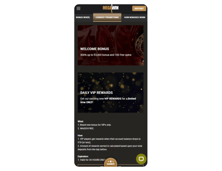 I discovered a welcome bonus and a rewarding VIP program at Megawin EU.