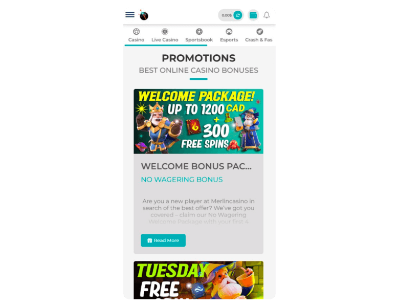 Merlin doesn’t push a native casino app. Instead, it runs as a PWA, meaning it’s basically the full website packaged to behave like an app.