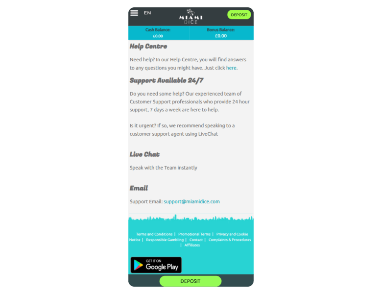 | Deposit methods | Deposit limits | Deposit time |
