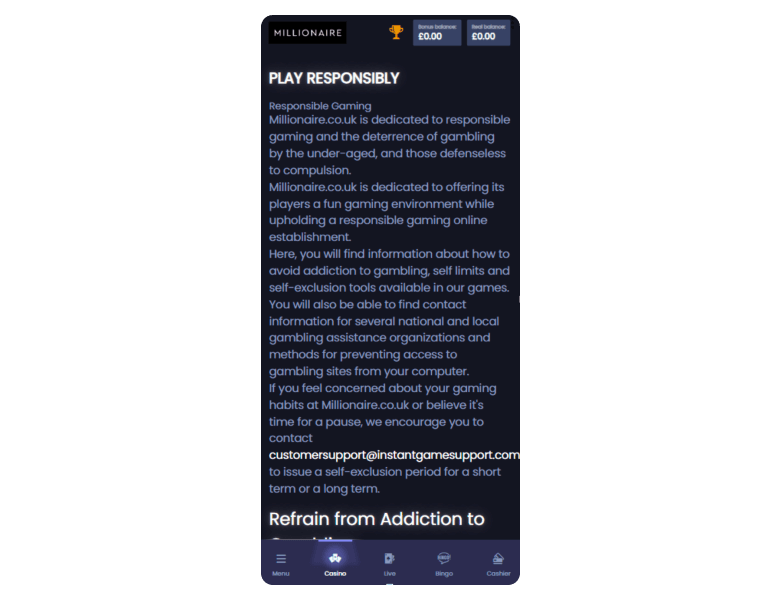 No self-assessment tests, but I personally don’t mind it. Those are commonly available anywhere on the web anyway, so in case I want to check my behaviour, I’ll find those elsewhere. I was more worried about the actual tools working in practice. And there was the whole pack! Deposit, loss & wager limits, reality checks, timeouts, self-exclusion, and extras like session expiry were all here. Easily manageable, too — no nonsense like needing the support team to set up limitations.