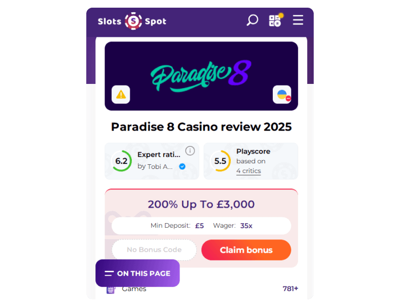 Review Disclosure: I explored Paradise 8 to see how it performs in terms of games, payments, security, and customer support. Below, you’ll find my honest and objective findings.
