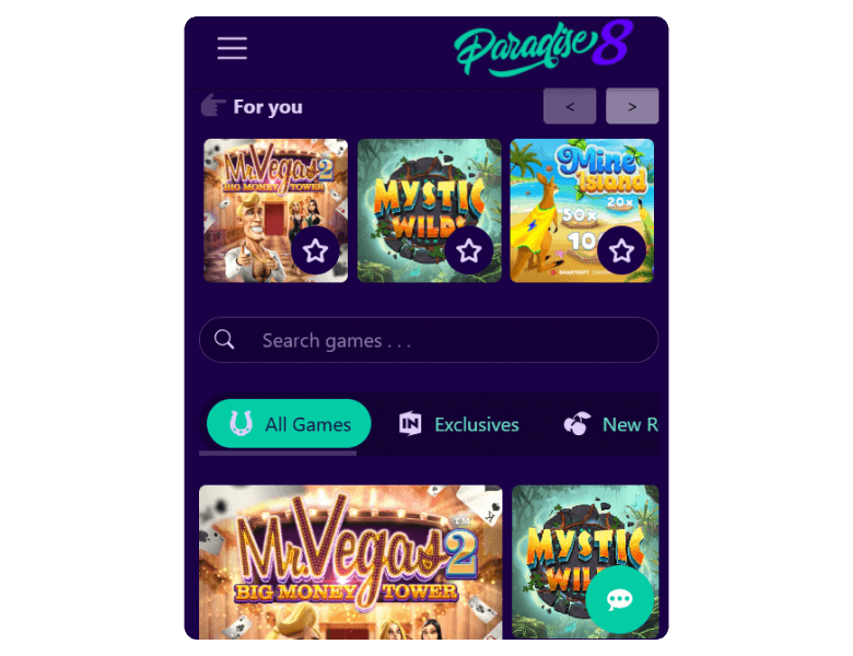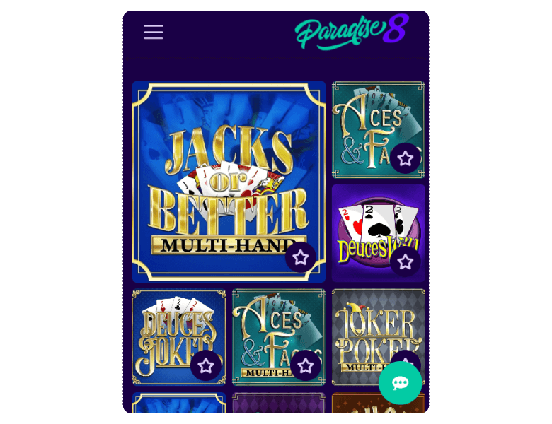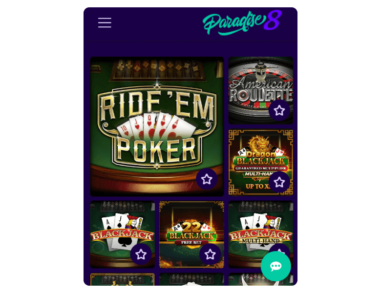 You can access Paradise 8 and its content from updated browsers on your Android or iOS mobile device — no casino app download needed. The HTML5 website runs smoothly as long as you use the latest versions of Chrome, Opera, Safari, or Firefox browsers and have a stable internet connection. The content scales responsively on the five-inch screen and all games load fast.