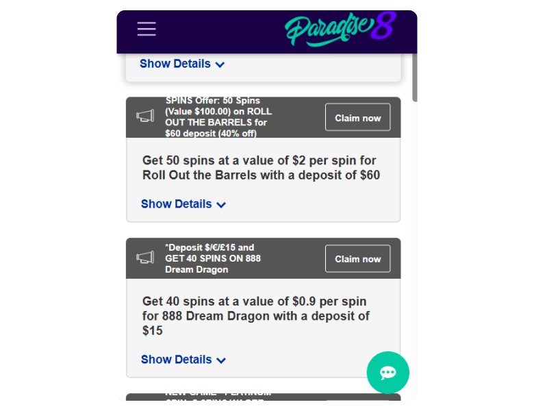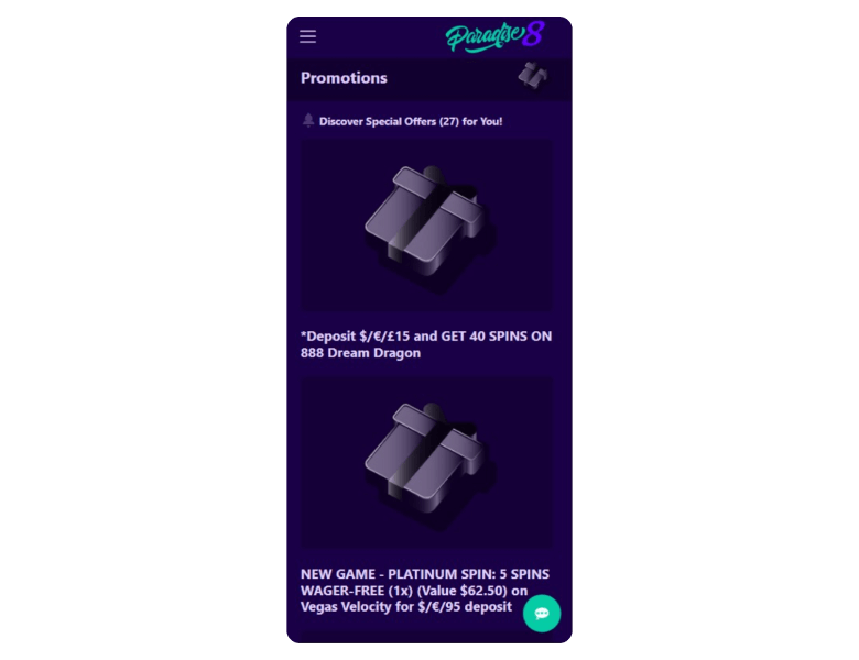 Paradise 8 mixes it up well for rewards. These are the currently available promotions at the casino: