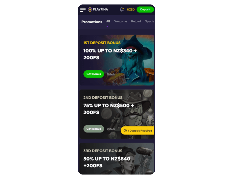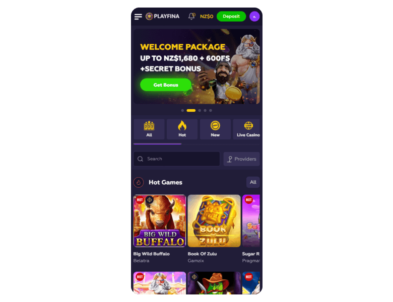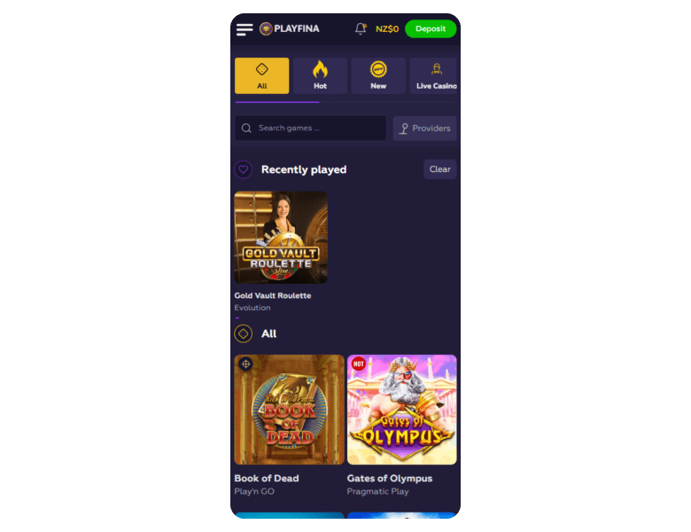 Let me start by saying that Playfina recently became my go-to casino. It’s Curacao-licensed, minimum withdrawal starts at NZ$20, and it boasts more than 5,300 titles, including over 3,000 slots, 400+ blackjack, 280+ roulette, and a whopping 1,256 live dealer games. Unsurprisingly, there are Pragmatic Play, Yggdrasil, Play’n GO, and infinite Pragmatic Live titles.