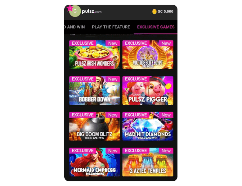 Pulsz has over 500 casino-style games available on both desktop and mobile. You’ll find popular titles in different categories, such as slot machines, table games, and arcade games, from notable software companies in the gaming world.