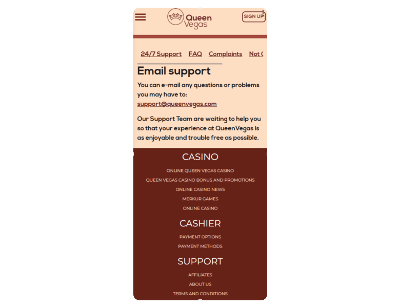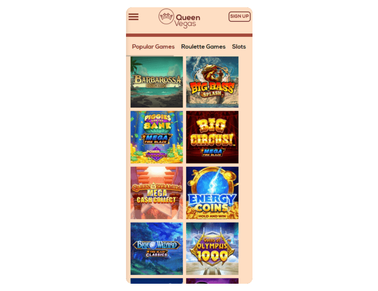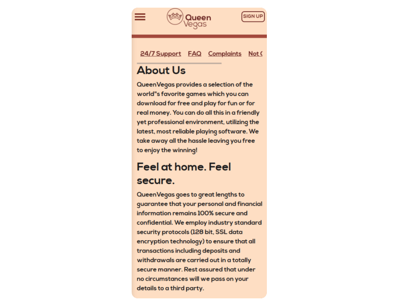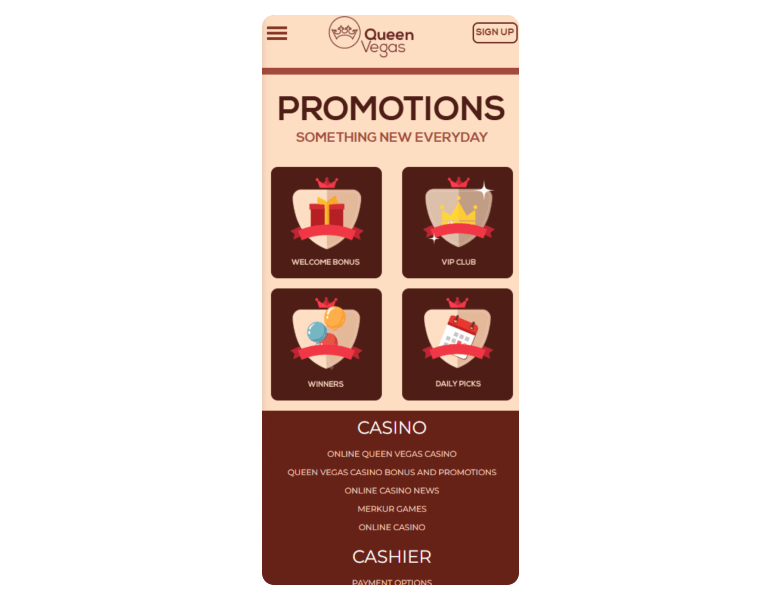 Screenshot of the main sections of the casino website: