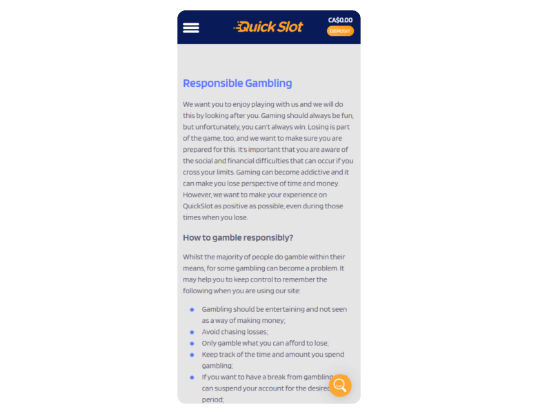 Quickslot Casino operates under a Curacao license to support a safe gaming environment. I liked the fact that the operator offers several responsible gaming tools such as financial limits, time-outs, self-exclusion, and access to help resources.