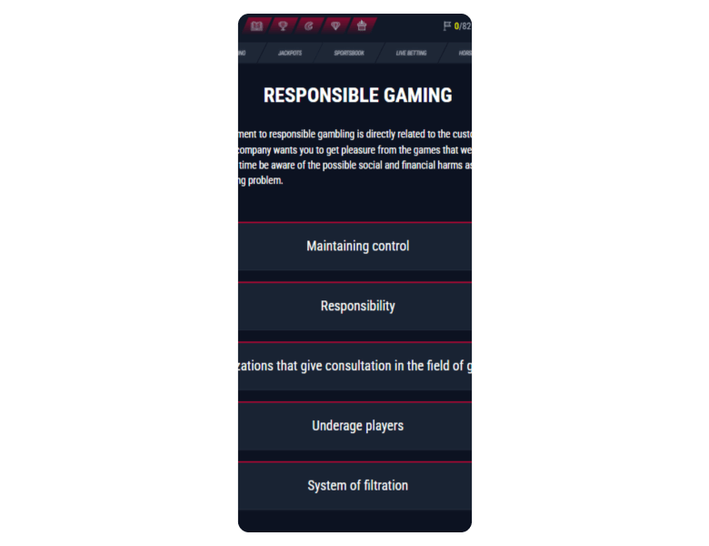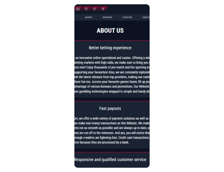 Screenshot of the main sections of the casino website:
