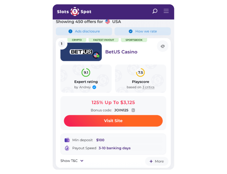 Want to know where to play your favorite real money online slots games with bonus cash or free spins? Right below we’re pointing you towards the best casino bonuses currently on offer at our recommended sites.
