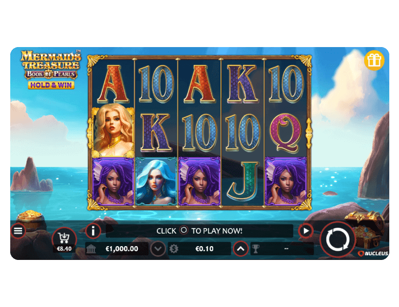 When you play slots for real money, always start by familiarizing yourself with the paytable to understand which are the highest paying symbols and which features can lead to bonus games or increased multipliers. We’re using Mermaid’s Treasure Book of Pearls Hold & Win slot as an example here.