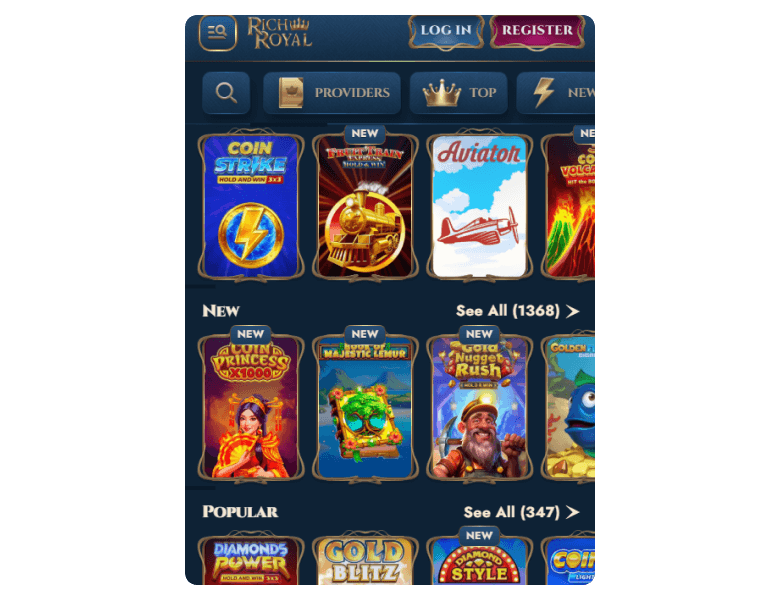 RichRoyal Casino launched in 2025 and targets players in Canada, Australia, New Zealand, and most of Europe. It focuses only on casino gaming, with no sportsbook, poker, or bingo options available. The brand is a standalone project and doesn’t operate under a larger network of casinos.