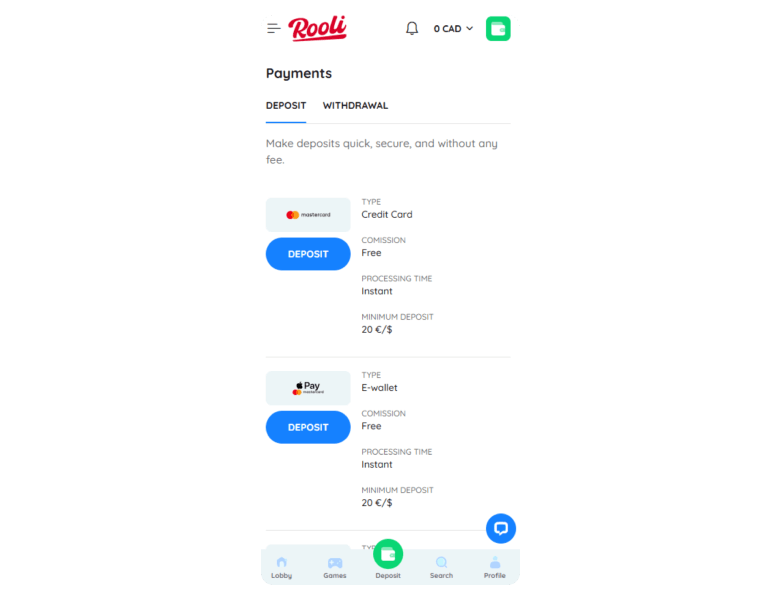 I believe that Rooli Casino is a solid choice. However, I think that the C$300 minimum limit for bank withdrawals is too high.