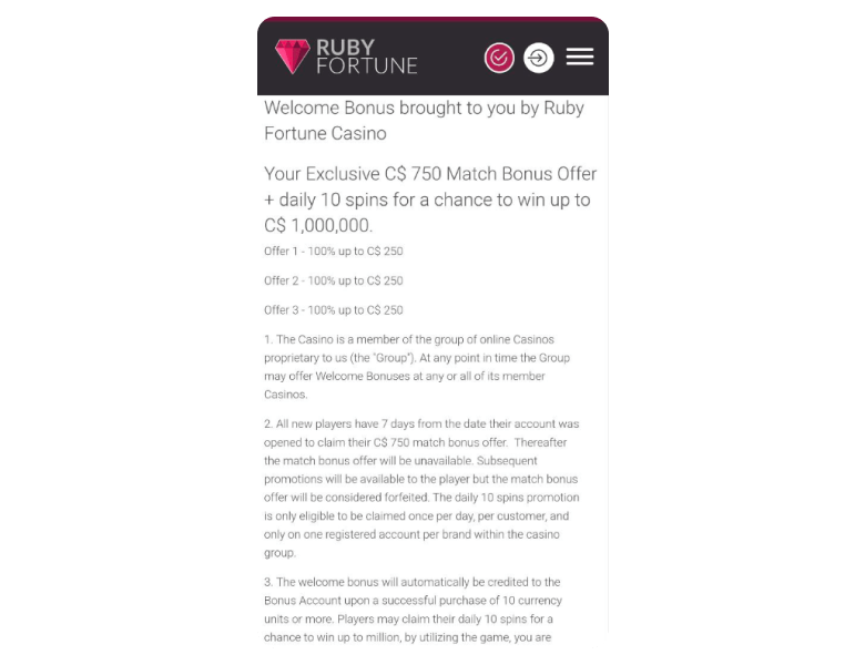 It was impressive to see that Ruby Fortune offers players a similar experience whether they're using the desktop or mobile casino version. However, extending the platform’s availability to other regions will give it a stronger edge over its competitors.
