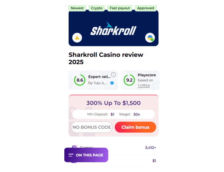 Review Disclosure: After spending some time testing the games, bonuses, and payment systems at Sharkroll Casino, here's my honest and unbiased review of the casino's products and features.