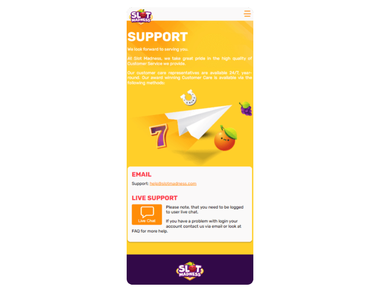 Overall, Slot Madness Casino delivers, but the addition of live games would make it better.