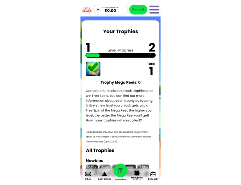 1 Spin on Mega Reel - Up To 500 Free Spins