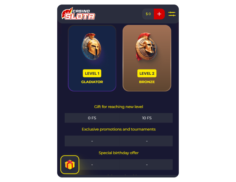 The registration process at Slota Casino doesn't take long. You only need to follow a few simple steps: