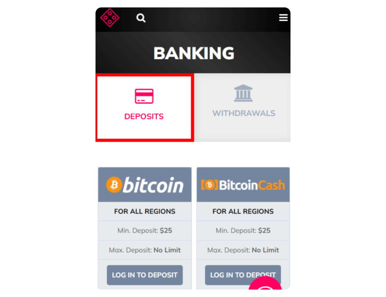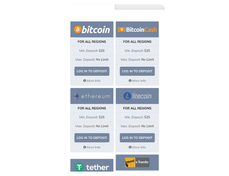 | Deposit methods | Deposit limits | Deposit time |