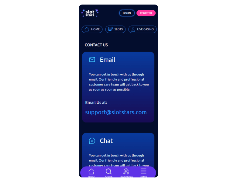 My overall experience with SlotStars was satisfying due to the variety of games listed in its catalog. However, when I had an issue with an INTERAC payment, I was disappointed to discover that the site does not have 24/7 support.