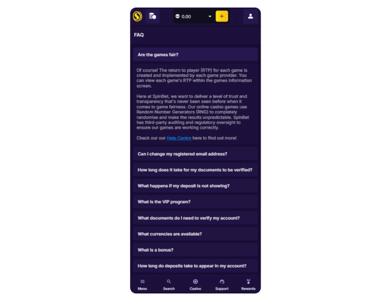 Your address, name, and date of birth confirm you’re of legal age, and KYC reconfirms all these details. It keeps the platform secure and ensures Spinbet respects AML laws.