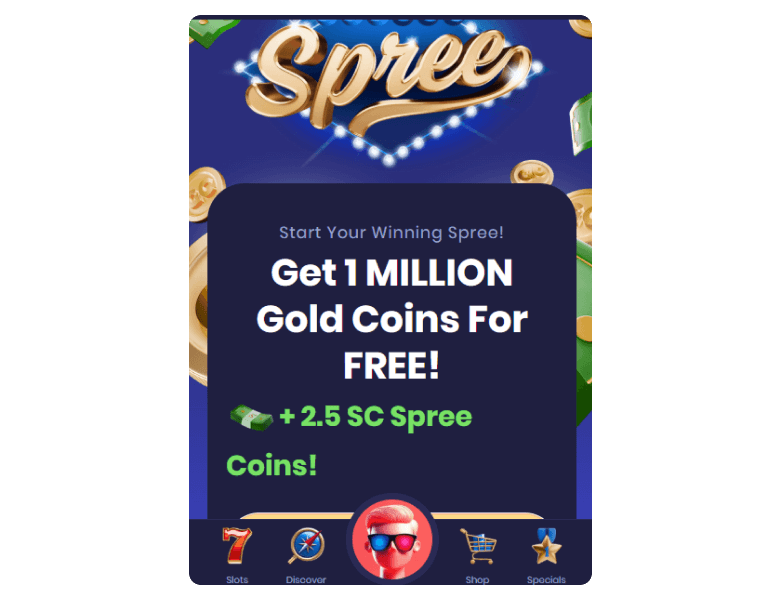 | Welcome Offer | 1,000,000 Gold Coins + 2.5 Spree Coins |