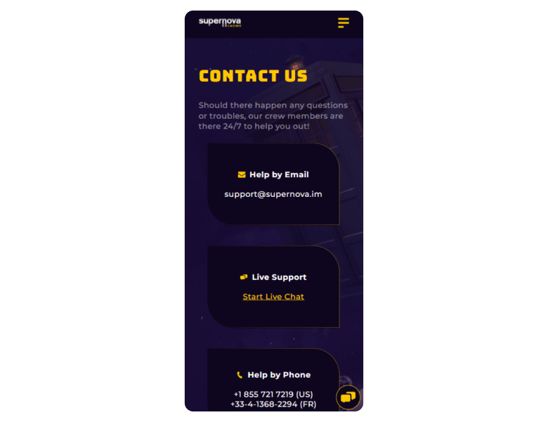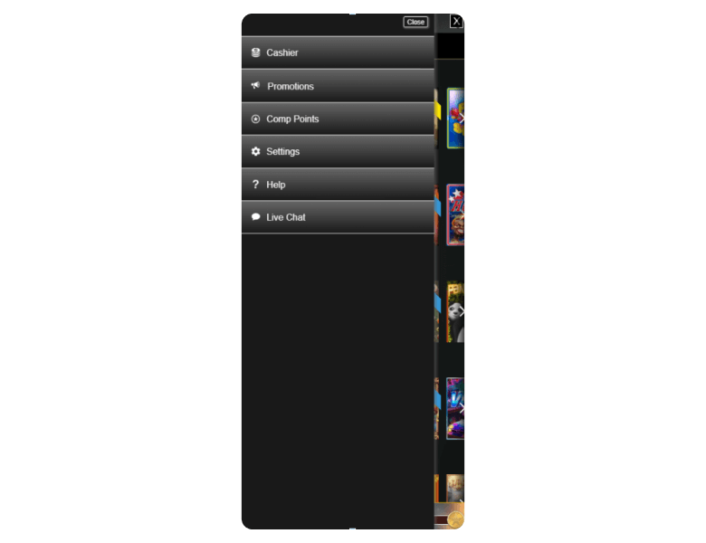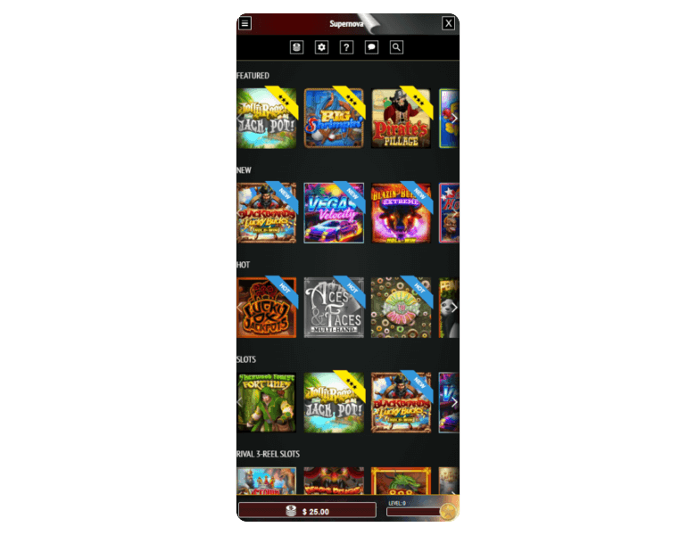 Screenshot of the main sections of the casino website: