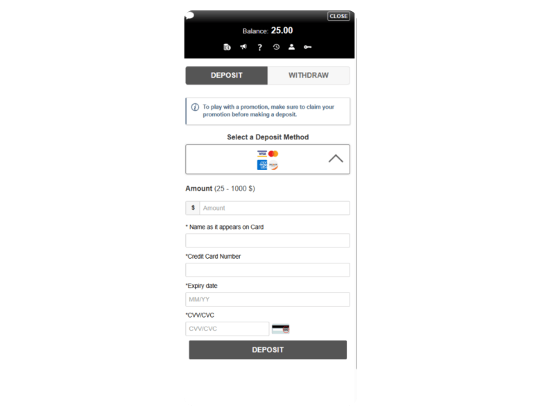 | Deposit methods | Deposit limits | Deposit time |