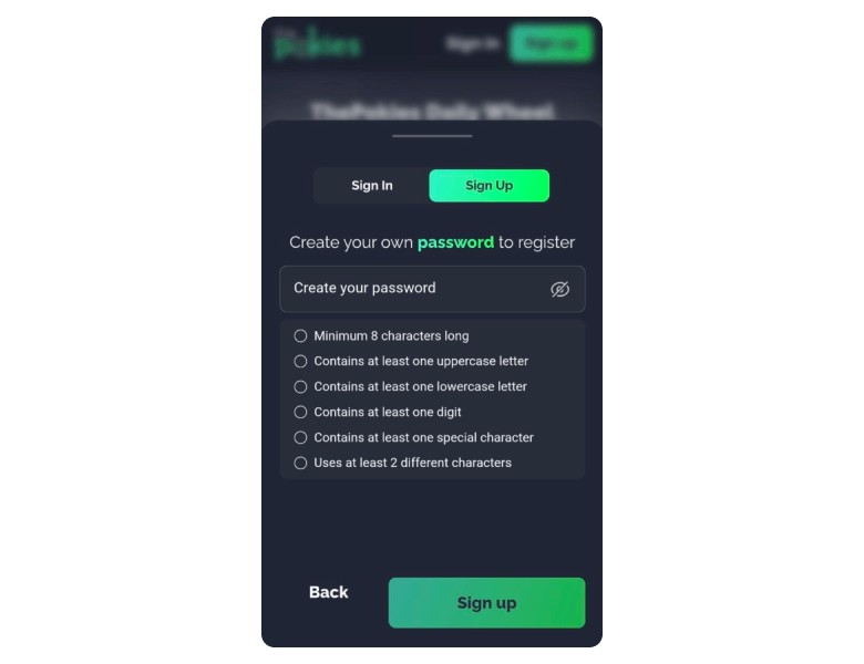 If you're already registered on the site, you can quickly log in using your The Pokies Casino login and password.