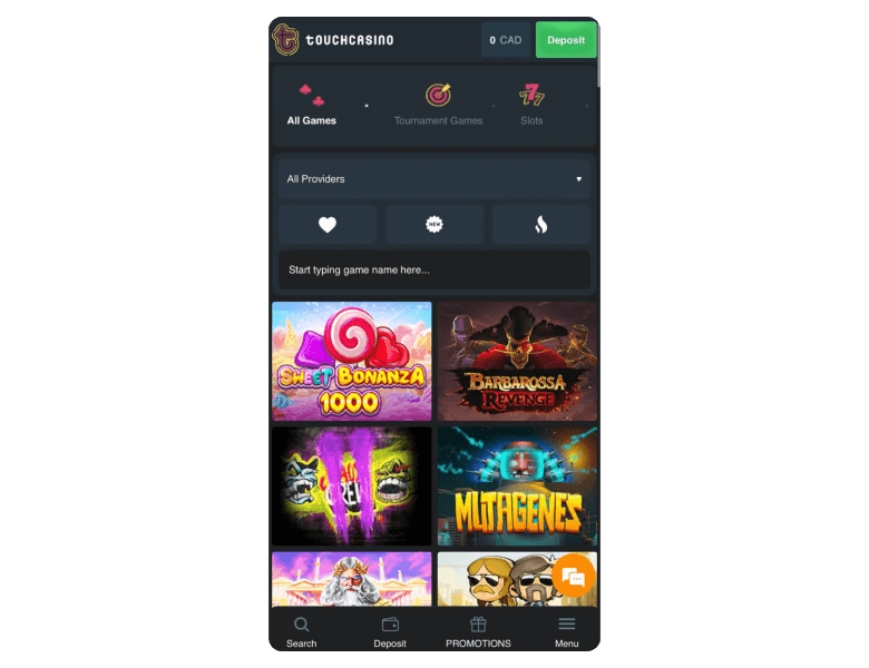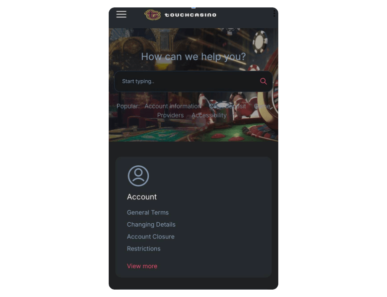 Screenshot of the main sections of the casino website: