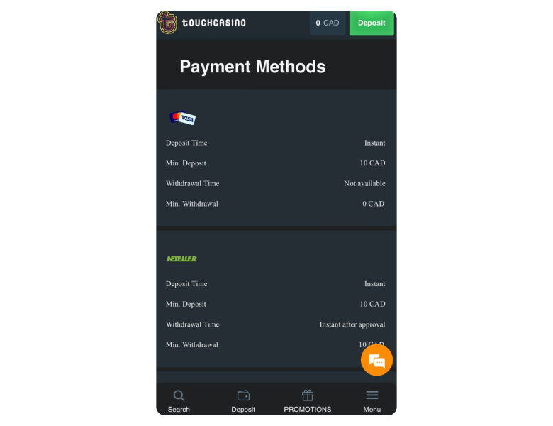 | | C$20–C$2,000 | Instant |
