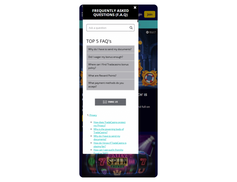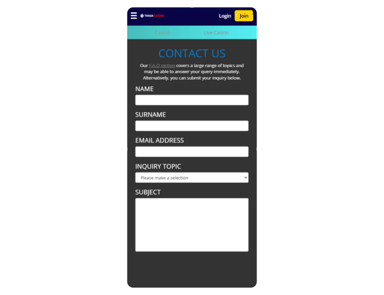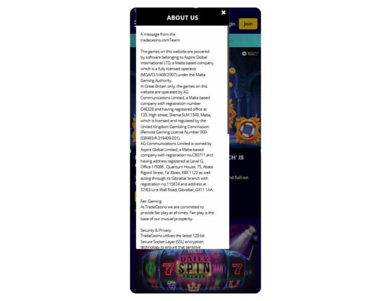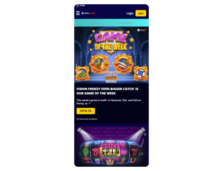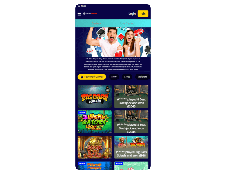 Screenshot of the main sections of the casino website: