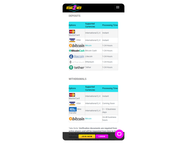 | Withdrawal methods | Withdrawal limits | Withdrawal time |