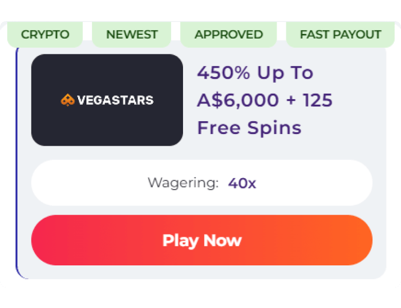 Vegastars is a modern platform that is a good fit for Canadians who like playing high-paying or trending slots. It might not be suitable for people who are into high-limit table games or want to use VISA for withdrawals. Try it cost-efficiently with the A$6,000 welcome bonus.
