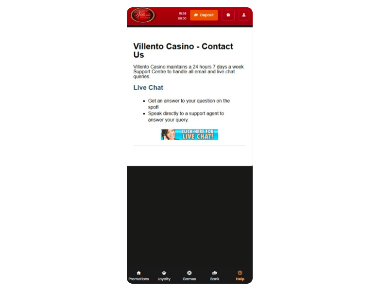Villento knows that it is also possible to attract public attention with quality service. Therefore, its employees are in touch 24/7 assisting in English, French, and German to create a comfortable gaming environment wherever you are. To get help, send an email to support@crhelpdesk.com or start a live chat on the ‘Contact Us’ page. Of course, the second option is more effective for urgent issues. Villento Casino has no phone line, which is undeniably a drawback.
