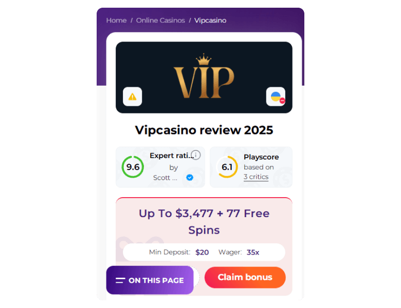 Review Disclosure: The following review of VIPcasino is based solely on my personal experience in May 2025 and impressions after thoroughly testing its games, bonus offers, and interesting features. Let’s take a closer look.