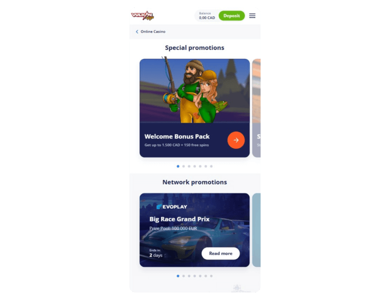 Vulkan Vegas Casino stands out with its rich game library of nearly 10,500 games, including keno, craps, dice, sic-bo, and other types that aren’t often placed at other casinos. All its catalog is powered by top providers like Endorphina, Enrich Gaming, Evolution, and Evoplay, so playing here is really enjoyable.