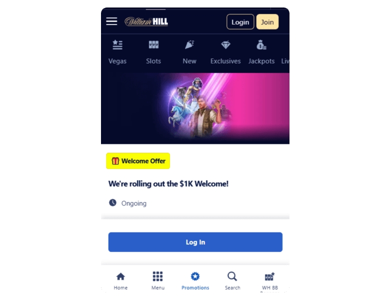 Here is how to register and claim the first bonus on William Hill Vegas: