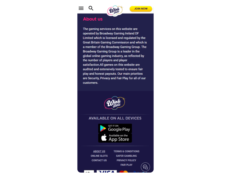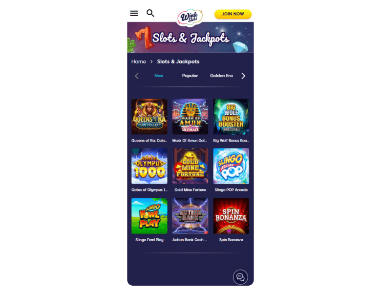 Screenshot of the main sections of the casino website: