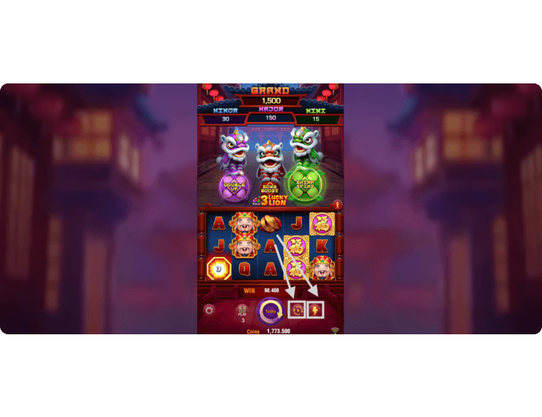 3 Lucky Lion offers 4 jackpots at once. To win at least one of them, you need to land a coin with the corresponding mark during the respin bonus round. The size of the jackpots depends on the selected bet, and the multipliers can be found in the paytable. Mini pays x5, Minor — x10, Major — x50, and Grand — x500. At the same time, the jackpot amount will be increased by the coin values collected, guaranteeing the best win.