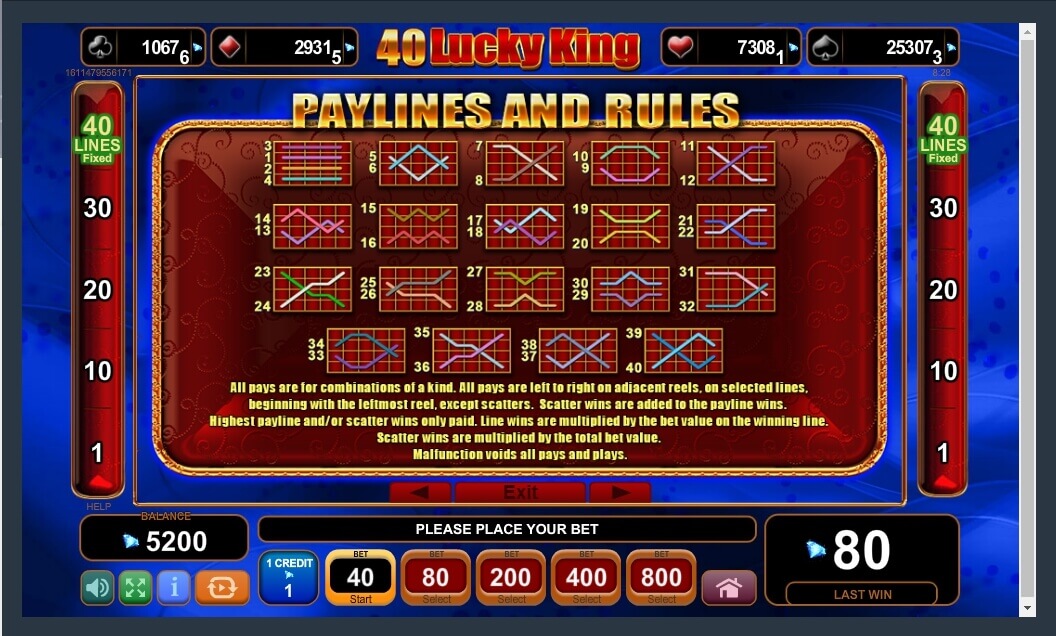 40 Lucky King is the kind of game that should be tried out by all types of gamers. It doesn’t matter if you are well-experienced, or only the beginner. Start playing this game and it will be enough to become the fan of it. It will be hard for you to stop playing it in the future.