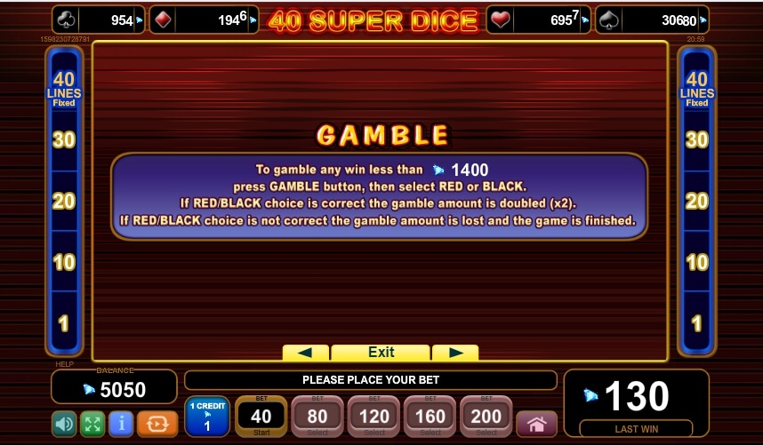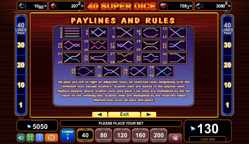 40 Super Dice is an online-slot that attracts with its simplicity and ease. Due to a wide range of rates, this game is suitable for both beginners and hard-core gamers who aren`t used to exchanging small things. Let yourself rest with 40 Super Dice!