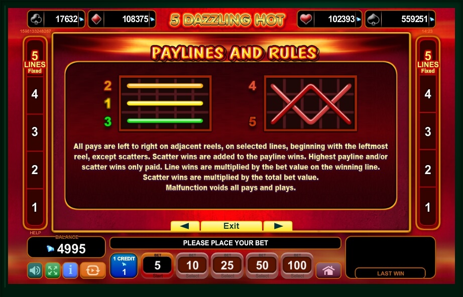 The 5 Dazzling Hot slot is very easy to play