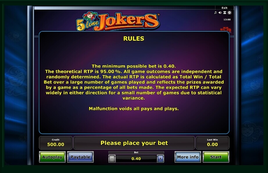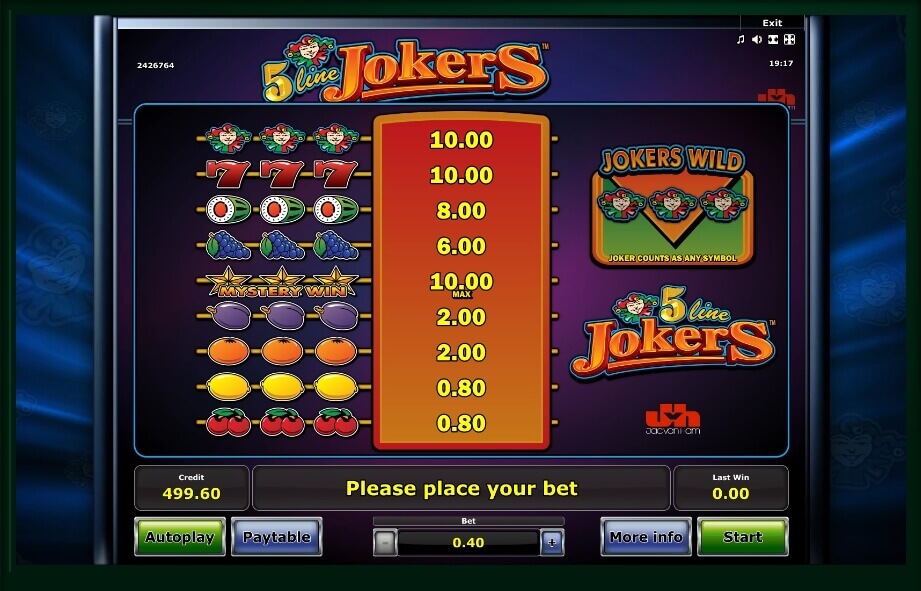 This slot machine is equipped with a standard set of buttons. Before you start playing, you should read the payout table by clicking on the “Paytable” button. Here it is written that the gameplay takes place on 3 reels and 5 paylines. Experienced players know that this is the best structure for the profitable gameplay. In addition, you will find information about additional symbols and bonus games.