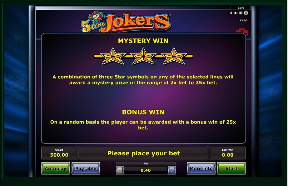 Jokers are analogous to the Wild symbol. They independently make chains with high coefficients and also replace other pictures in the paid combos. The stars form winning sequences according to general rules, but the sizes of payments are determined randomly.