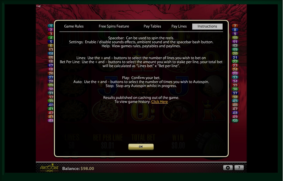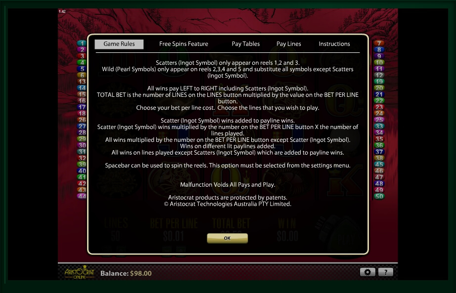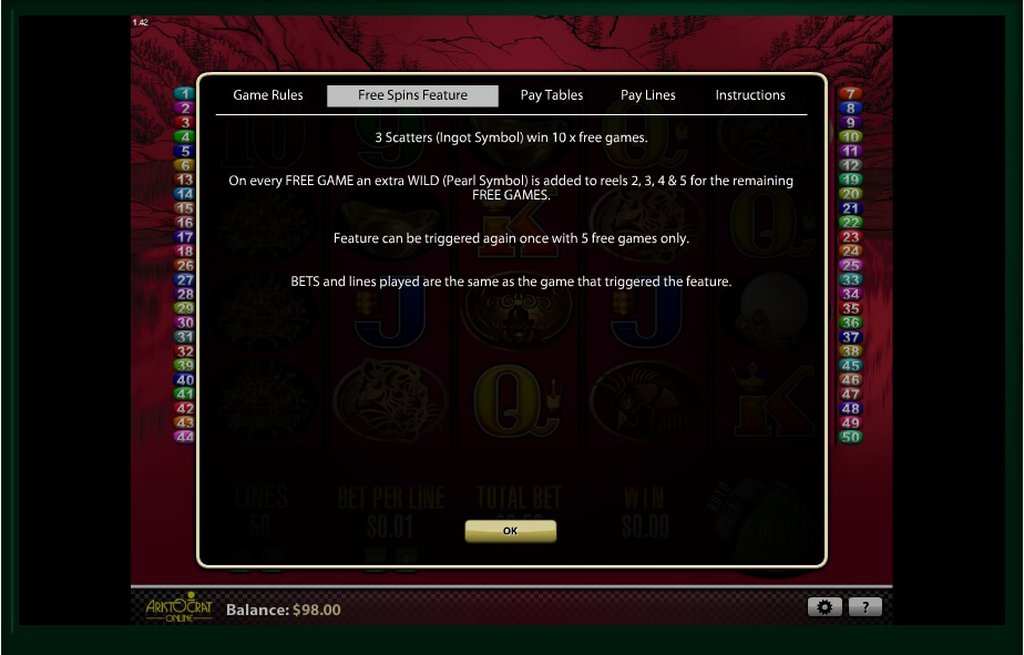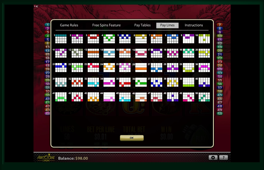 The 50 Dragons slot has 5 reels and 50 paylines. 50 Dragons slot machines turn in the simple order of the other gameplay online casino mode. The number of reels and paylines can be regulated by the player. Activate the gambling mode to start gaming.