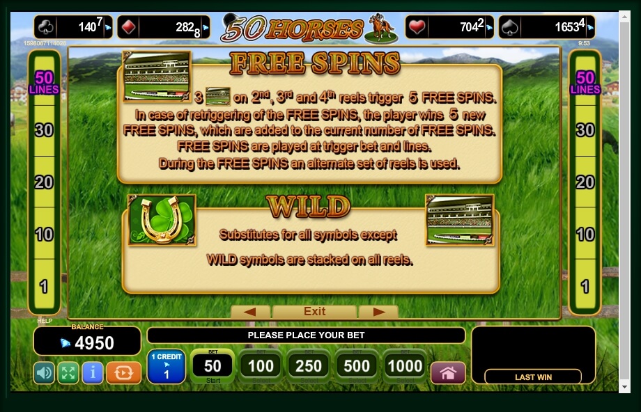 The racecourse symbol is the Scatter symbol. That appears on the reels 2, 3 and 4 only and if user catches 3 of these on the reels, he can trigger free spins round. The horseshoe plays as a Wild. This picture can replace all the other images in the game, to give more possible wins.